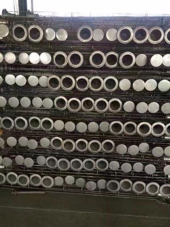 5、有機硅處理骨架鍍層牢固耐腐,避免了除塵器工作一段時間后骨架表面銹蝕與濾袋黏結,使換袋順利,同時減少了換袋過程中對布袋的損壞。